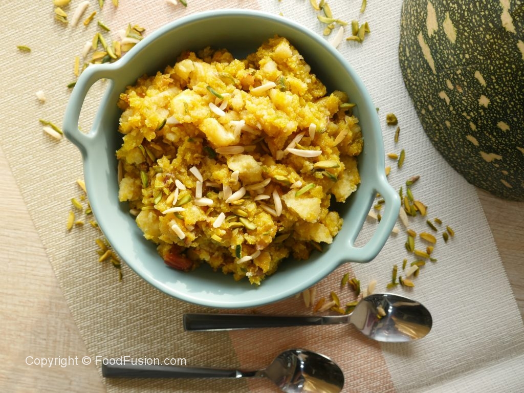 Paithay/Kadu ko do hisson mein cut ker lein aur seeds nikal lein.