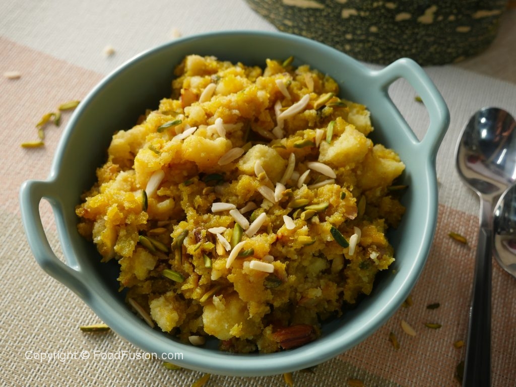 Pot mein grated kaddu dal ker ache tarhan mix karein aur darmiyani ancch per 20-25 minutes ya sukh janay tak paka lein & bech bech mein mix kertay rahein.