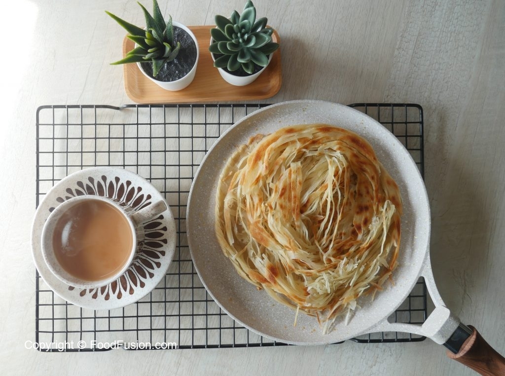 Haath ko ghee sa grease karein aur gently press ker ka dough ko haath ki madad sa paratha ki tarhan pheela lein (makes 4).