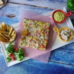 On bread slices,add vegetable & cheese filling,sprinkle dried oregano & red chilli crushed on top.