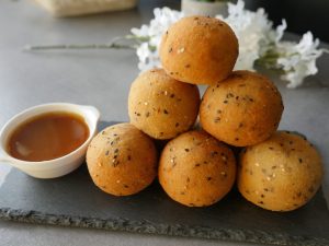 In bowl breadcrumbs,black sesame seeds and mix well.