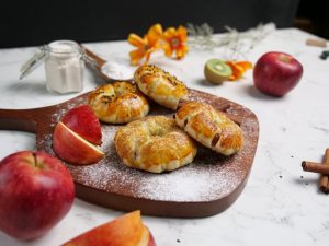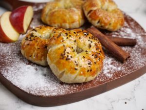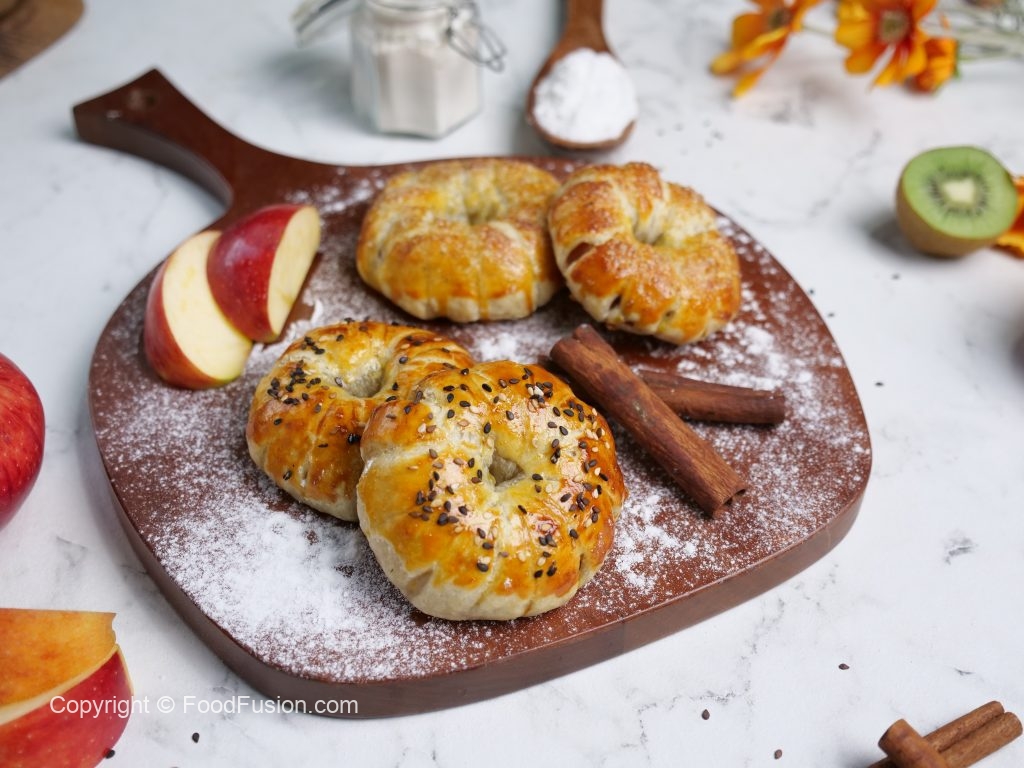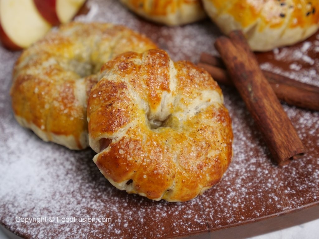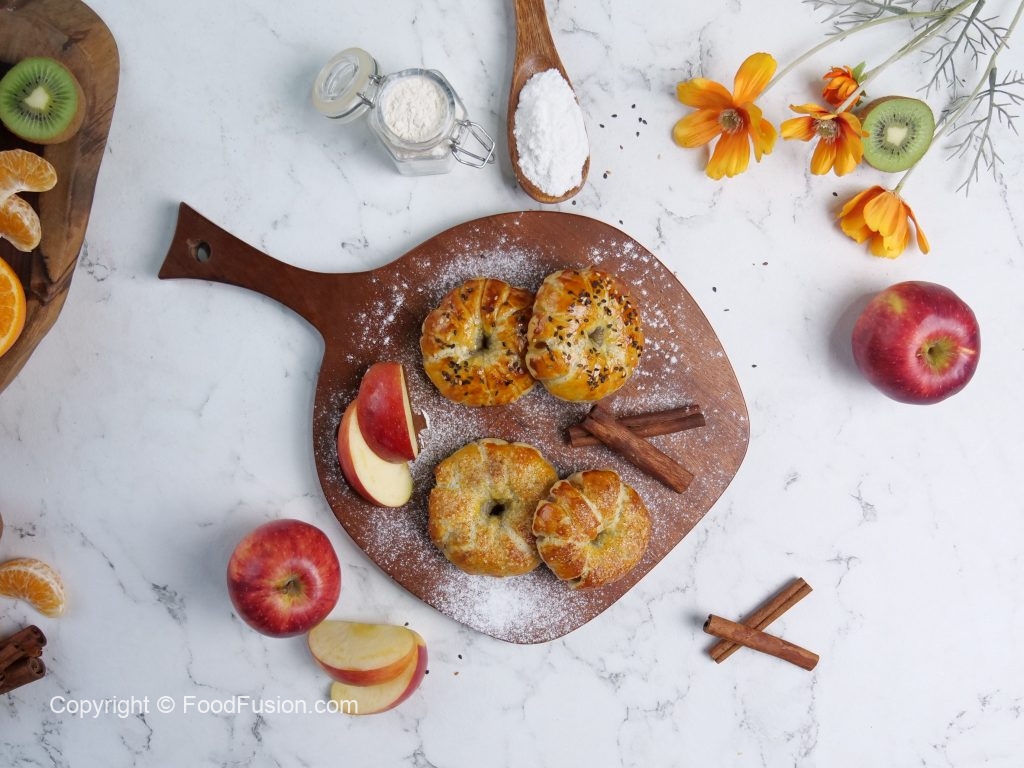 -Apple rings ko puff pastry strips sa wrap ker lein (makes 4).