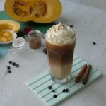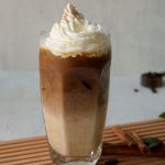 In serving glass,add ice cubes,pumpkin spice milk,coffee mixture,whipped cream,sprinkle cinnamon powder & serve!