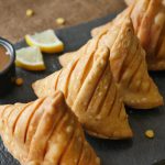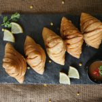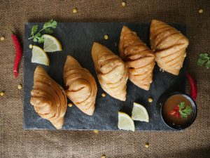 On one side of dough,apply water,join two sides/edges to make a cone and press gently to seal the cone.