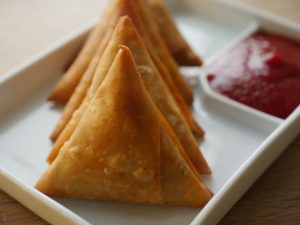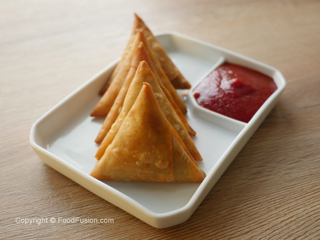 Take samosa patti/manda patti and make pocket,add filling in the center and roll into the shape of samosa and seal corners with all-purpose flour & water paste.