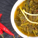 -Trim the root/stems ends of fresh mustard leaves, & add in a rolling boil of water, boil for 2 minutes on medium flame, then turn off the flame.