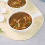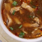 -Serving bowl mein lal mirch crushed,soy sauce,til ka tel,soup aur hara pyaz leaves dal ker serve karein!