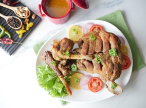 Mutton leg ko prick ker ka marks/cuts laga lein.