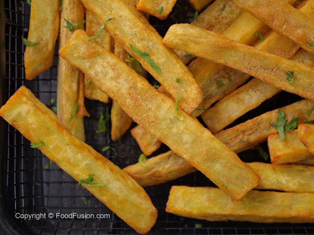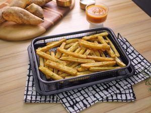 -Ek tray par kitchen cloth bicha den, fries ko single layer mein phela den, achi tarah pat dry kar len, phir kitchen cloth hata den.