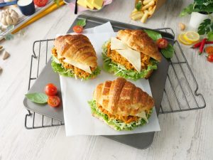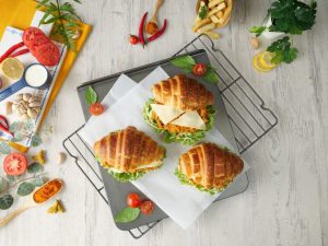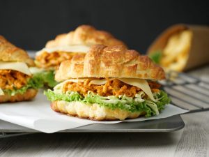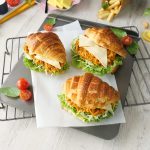 -On top side of croissant,spread butter & flip to make a sandwich (makes 5-6) & serve!