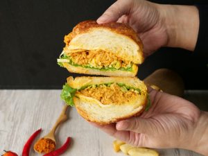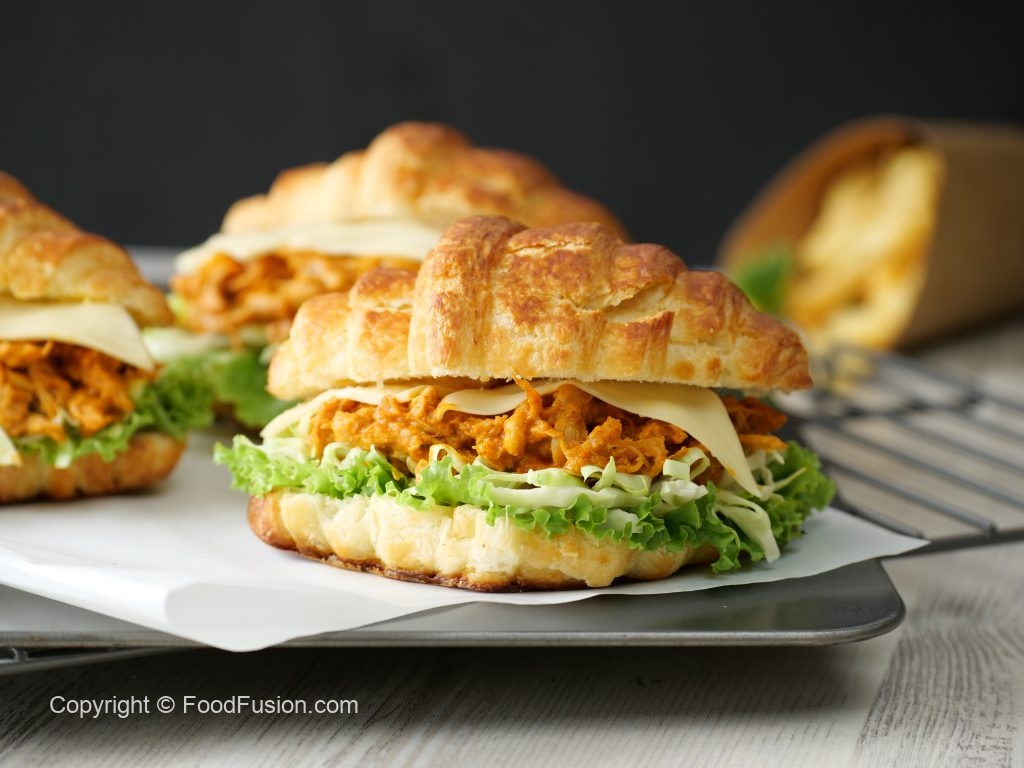 -On one side,spread butter,add lettuce leaves,cabbage,prepared butter chicken & cheddar cheese slice.
