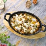 Garam sizzler pan mein chicken boti,dahi aur flavored butter dal ker serve karein!