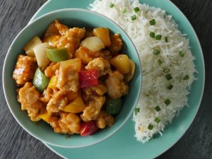 -Add garlic fried rice,stir fried vegetables,creamy mashed potato,chicken fillets,garlic & pepper sauce & serve!