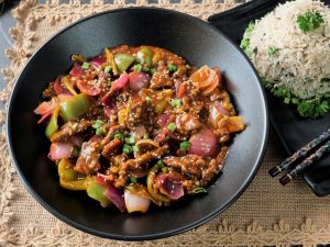 -Garlic fried rice,stir fried vegetables,creamy mashed potato,chicken fillets,garlic & pepper sauce dal ker serve karein!