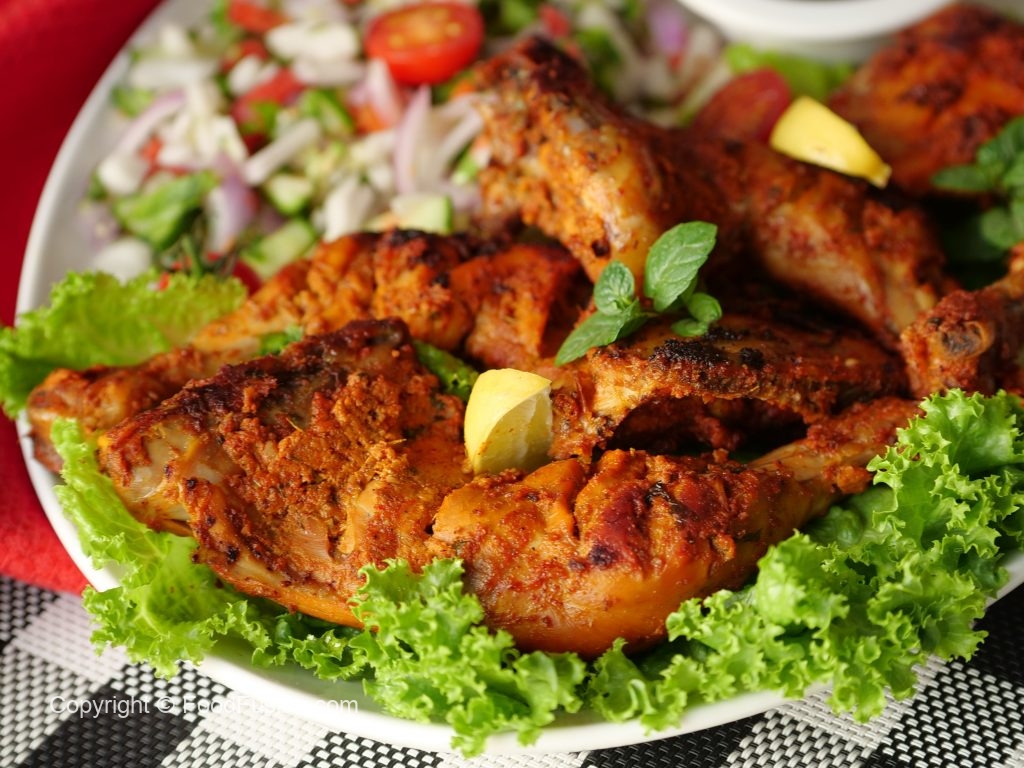 Smoky tandoori chicken ko salad or imli k sauce k sath serve karein.