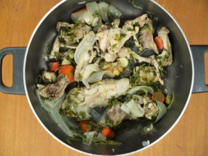 In a pot,add cooking oil,onions and fry until translucent.