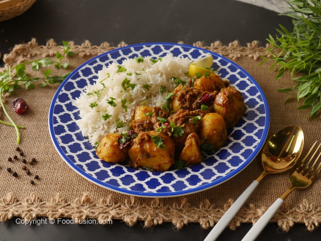 Add boiled potatoes & mix well,cover & cook on low flame for 7-8 minutes then cook on high flame until oil separates (2 minutes).