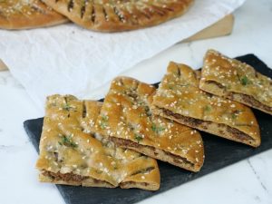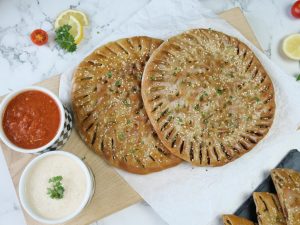 -After baking,apply butter,cut into pieces & serve with creamy yogurt sauce!