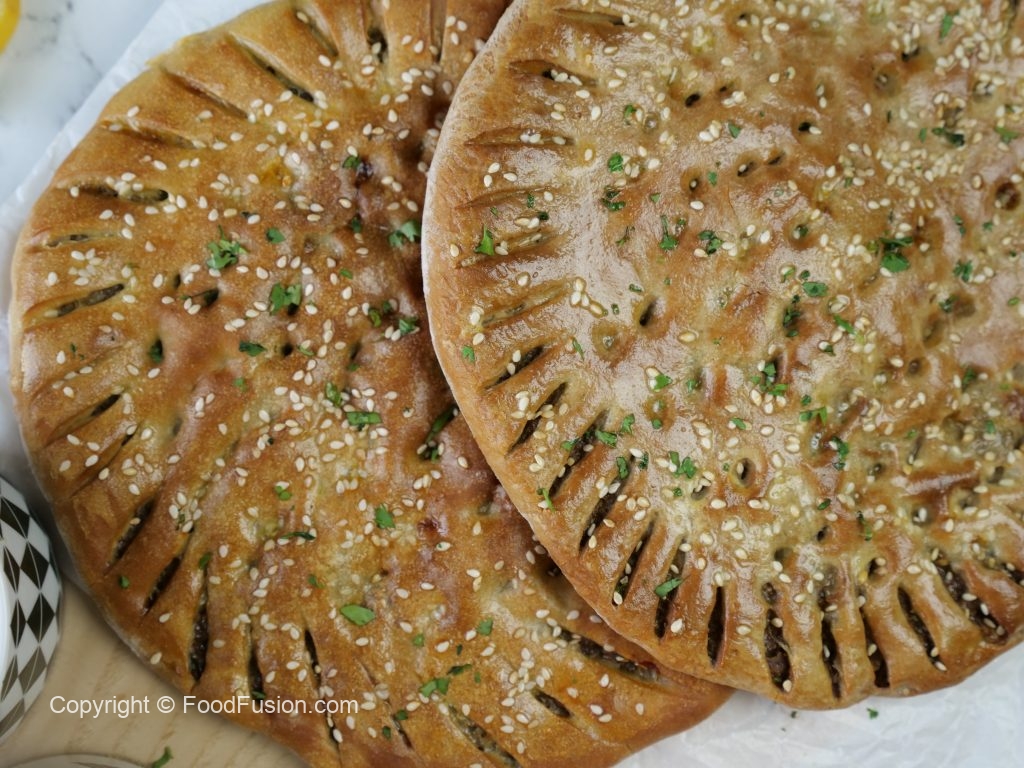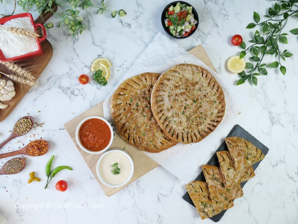 -Make cuts on the sides of naan with the help of knife and make marks with the help of fingers.