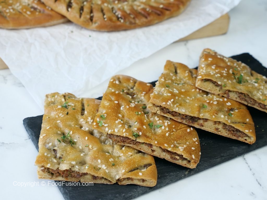 -Add mince filling (130g) and fold all edges to seal the filling.