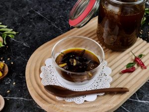 Add tamarind pulp,dates,jaggery,water,salt,black salt and ginger powder,mix well and cook on low flame for 5 minutes.