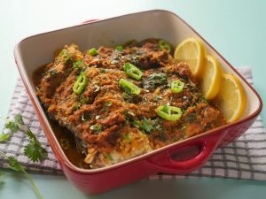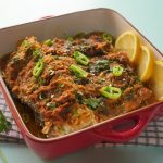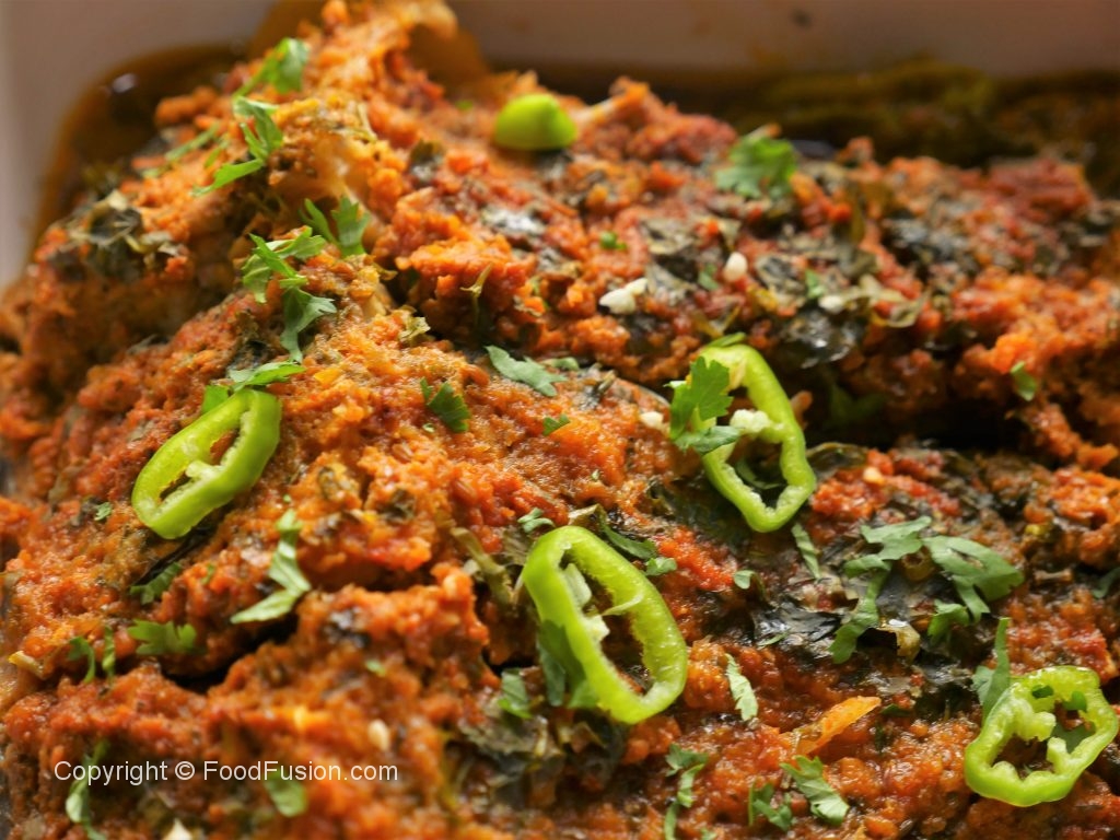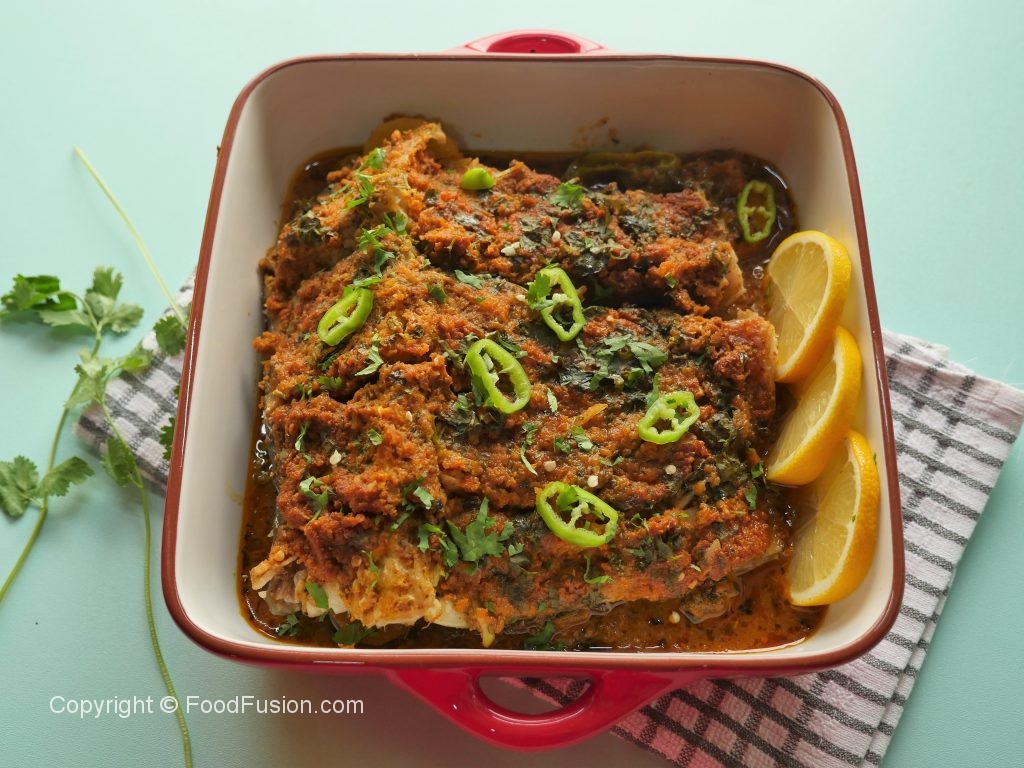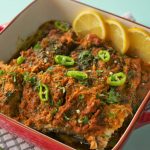 Dhak dein aur bohat halki ancch per 20-25 minutes kliya steam cook ker lein aur bech bech mein gravy ko fish ka upper daltey rahein phir dubara dhak dein aur 3-4 minutes kliya paka lein.