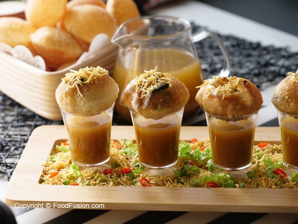 Gol gaapy mein hole ker lein,chanay,aloo & hari mong daal,spicy hari chutney,dahi,tayyar meethi chutney,chaat masal aur nimco sev dal dein aur tayyar minty khatta pani ka saath serve karein!