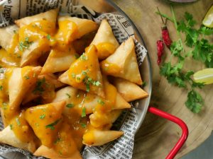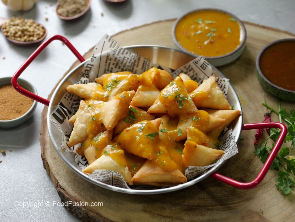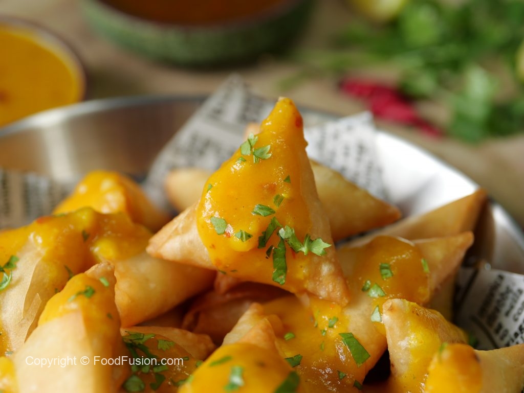 -On mini samosa,add prepared chutney,fresh coriander & serve!