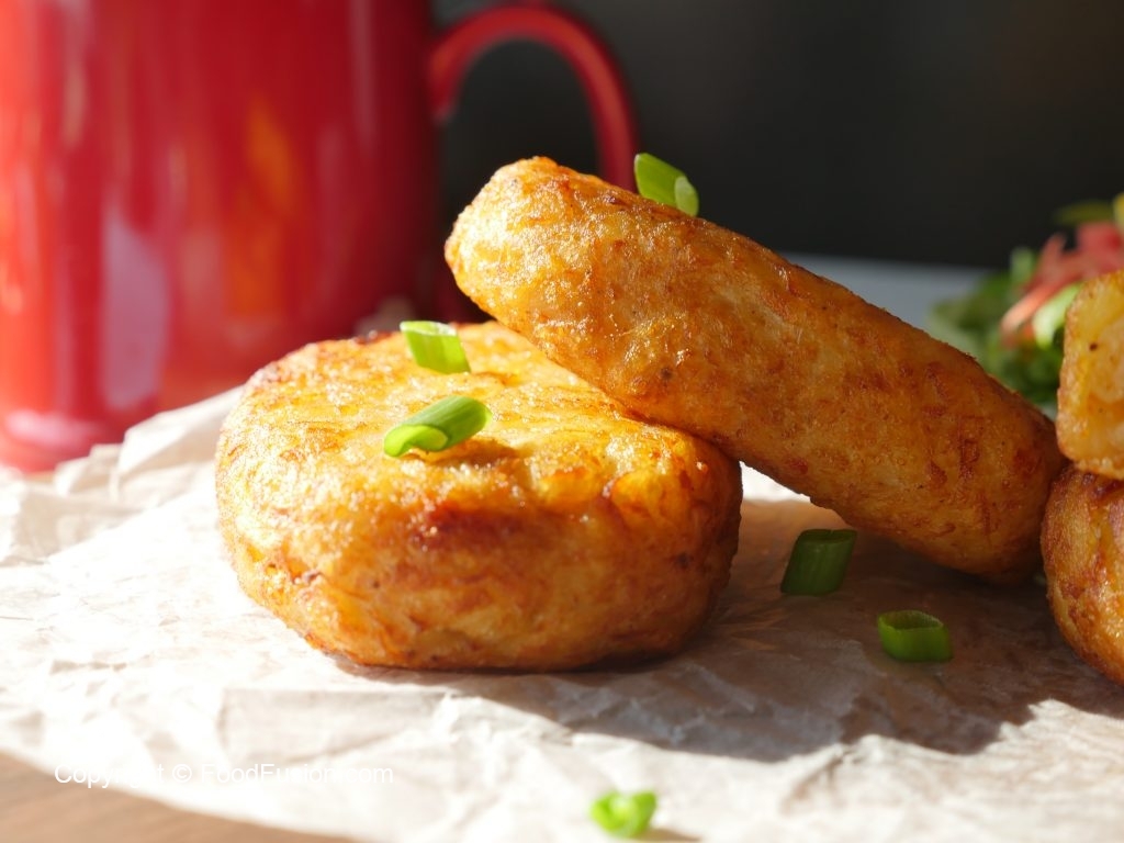 Karhai mein cooking oil garam karein aur hash brown ko golden brown hunay tak fry ker lein.