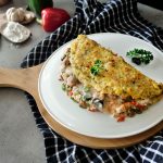 Omelet ki half side per cheddar cheese,tayyar stuffing aur mozzarella cheese dal dein.