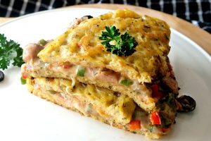 Plain side ko stuffing ka upper flip ker ka gently press lein aur dhak ker halki ancch per cheese melt ho janay tak paka lein (2 minutes) (makes 2-3).