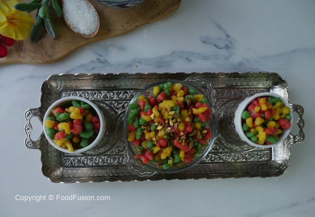 Fried boondiyon ko neem garam sheeray mein dal ker ache tarhan mix karein aur dhak ker 4-6 hours kliya chor dein & serve karein!