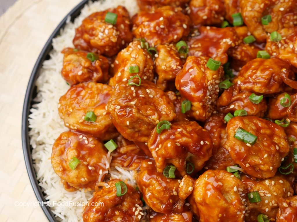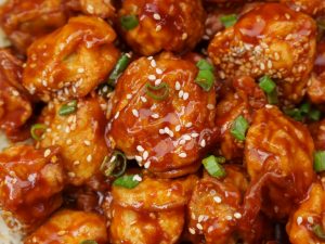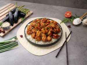 -Karahi mein cooking oil,tomato ketchup,gochujang hot pepper paste,soy sauce,sirka,cheeni,lal mirch powder,namak,cornflour aur pani dal ker ache tarhan whisk ker lein.