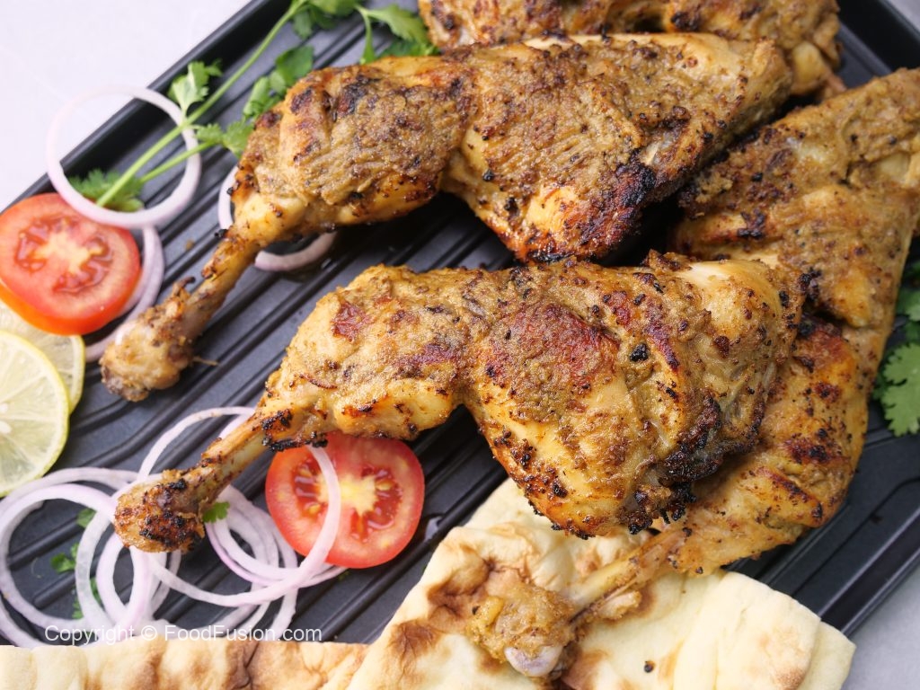 -Place a grill rack on stove & char grill chicken on direct flame for 1-2 minutes & apply cooking oil in between.