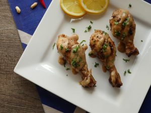 On cooked drumsticks,drizzle prepared sauce and sprinkle fresh coriander & serve!