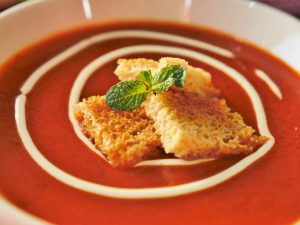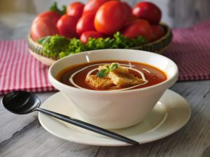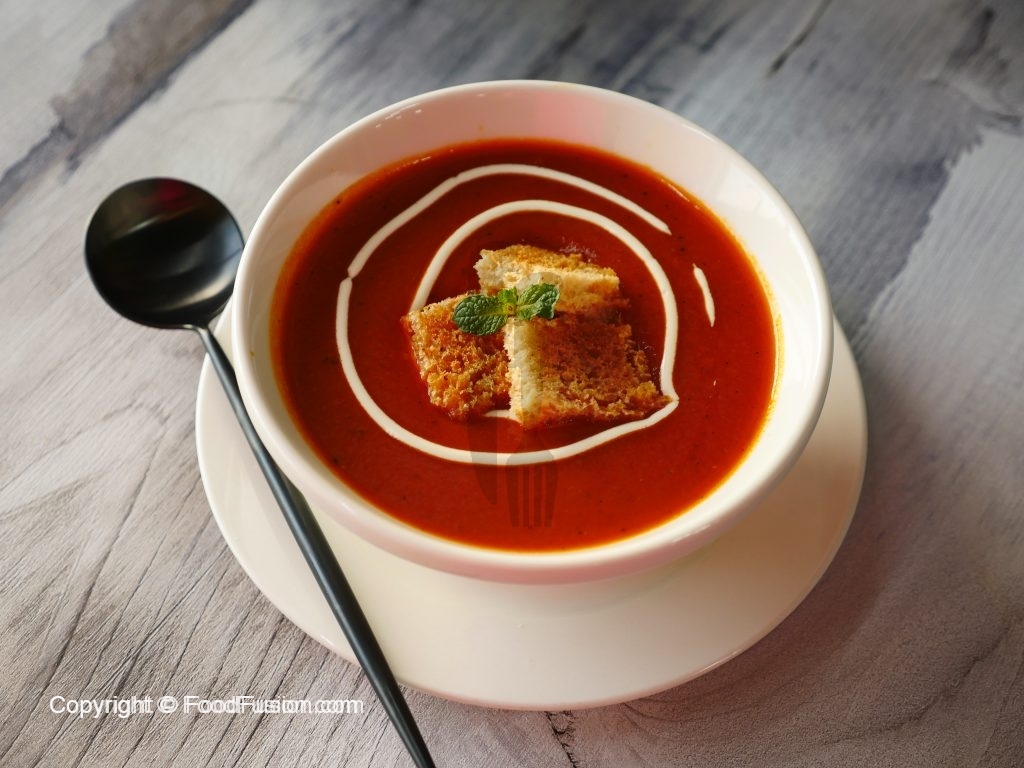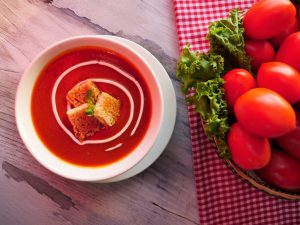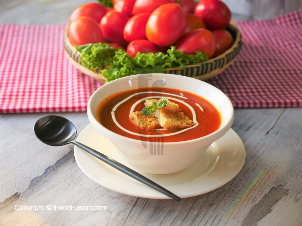 Apart from that Tomato soup is a great source of vitamin A, C and K, it also  contains calcium and antioxidants like carotenoid and lycopene. It is considered to be beneficial in improving skin, bones, cardiovascular, mental health.