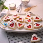 -On whole heart cookies,add fruit jam in the center & top with cutout heart cookies (makes 25-26).