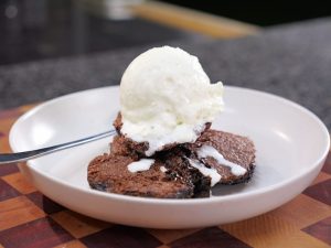 -Oven se nikal len aur 15–20 minutes ke liye cool hone den. Brownie pudding ko scoop karen, serving plate mein dalein aur ice-cream ke sath serve karen.