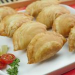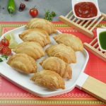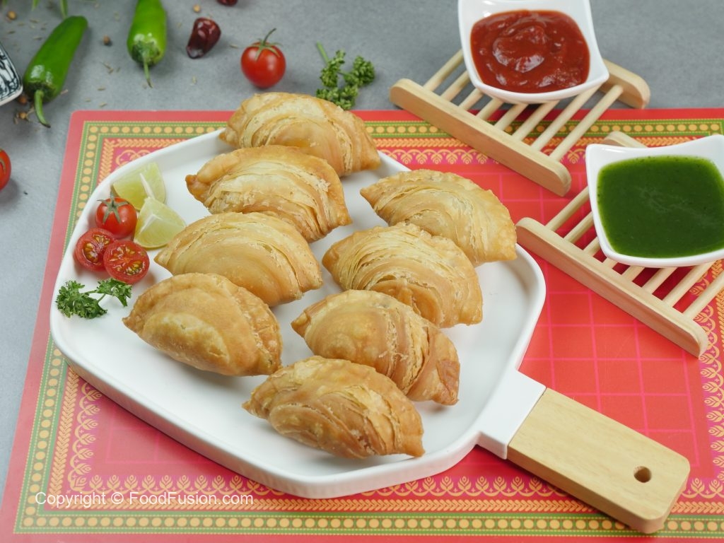 Dough ko samosa maker mein rakh ker tayyar chicken filling ko center mein dal dein,edges per pani laga lein aur samosa maker ko bund ker dein aur excess dough ko nikal lein (makes 24-25).