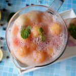 Pitcher mein melon balls,watermelon balls,honeydew melon balls,tayyar juice,7up aur podina dal ker stir ker lein & serve karein!